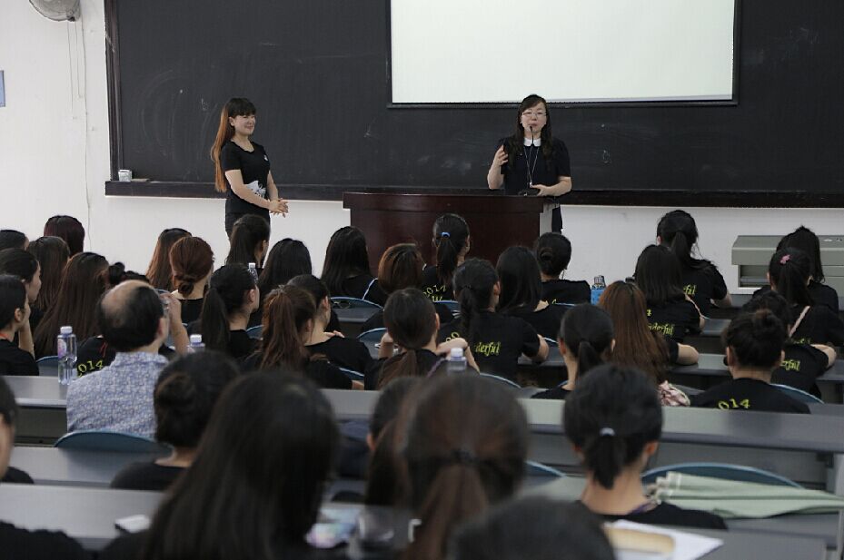 124名学生统一穿着2014级班服。庞大的队伍让我们强烈的感受到了这个大家庭的温暖“wonderful”是这个年纪特有的名字,它是美好的象征,是梦想的开始,是青春的希望是对明天的祝福。主持人请上礼仪队的同学给大家展示班服。并对班服上的各细节进行解说,还请上了班服的总设计廖茂杰同学再次为大家详细的做了说明。班服的logo设计,标志着我们进校时的梦想,一年过去,我们的时间都去哪儿了呢? 问题讨论: 同学们的时间都去哪儿了?