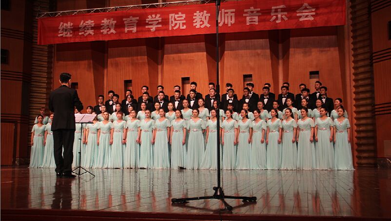 由专科部音舞班的《红扇》拉开了此次考核汇报音乐会的序幕;青年教师赵爽和谢沁的女声二重唱《高山流水》配合堪称默契,让观众仿佛置身意境中;钢琴教师蔡毅的独奏曲《Ravel la valse》,让我们随着那紧凑有力、高亢激情的演奏而陶醉;美丽的任娟老师清脆动听的嗓音和动情的演绎让我们欣赏了一曲《春天的芭蕾》其唱功让所有的观众随之震撼;谢文娟老师和方潇梅老师的一曲苗族民歌《飞歌》唱出了苗家女子明朗 快乐,精心的装扮也让人眼前一亮;王海清老师的《远离家乡去远征》中气十足表演力超强;王铭敏老师和李雪玲老师的一首《待到微风轻轻吹过》仿佛给我们讲述了一场唯美的婚礼故事;一曲表演曲目《黄四姐》恩施土家民歌再次显示了青年教师向松, 谭薇薇两位老师的的优秀舞台演出经验;《溜溜的康定溜溜的情》展现了音舞班的优美舞姿;四位教师姚静,杨媛,郭静共同演奏了一首女声三重唱《一窝雀》,这是把民间原生态音乐与古典音乐相结合的一种新的表现唱法,仿佛看到台上有三只美丽高贵的孔雀;肖新泉老师的《山鹊》生气灵动;四位青年教师金莹,朱琨,张鹤婷,李蕊老师的《祖国,我为你干杯》唱出了热爱祖国的情怀;一曲优雅、令人荡气回肠的《舒曼C大调幻想曲第一乐章op.17》,让罗愫老师把我们又重新带回到浪漫主义时期。身着一身红色藏装的拥江帆老师以一首《莫尼山》引起了全场的轰动;张宇老师的《父亲的草原母亲的河》让大家见识了其歌唱功底了得;最后,川音继续教育学院合唱团的《希伯来奴隶合唱》《铁跕之歌》震撼有力地结束了整场音乐会演出。此音乐会是继续教育学院又一次成功的演出。