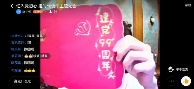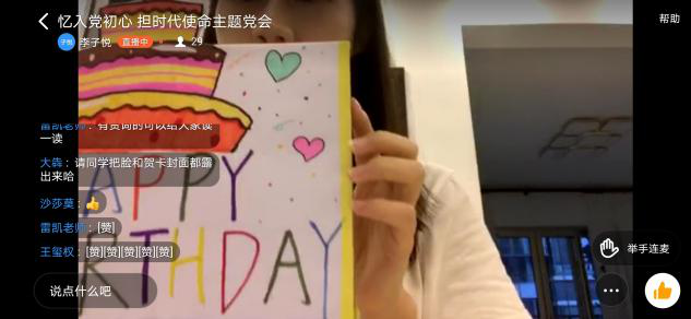青年是祖国的未来、民族的希望,而青年共产党员更应是其中的优秀分子。在中国共产党成立99周年之际,流行音乐学院学生党支部举行了“忆入党初心,担时代使命”为主题的线上交流活动。37名学生党员共同观看了中国共产党的历史纪录片,大家重温了入党誓词,就入党初衷进行了交流,并纷纷表示,要进一步端正思想,恪守承诺,对党忠诚,在任何时候,任何情况下,都会坚定理想信念,保持昂扬向上的精神风貌。活动过程中,部分学生党员展示了专门为党的生日制作的生日贺卡,部分党员学生在线歌唱,用歌声和音乐向党的生日献礼。