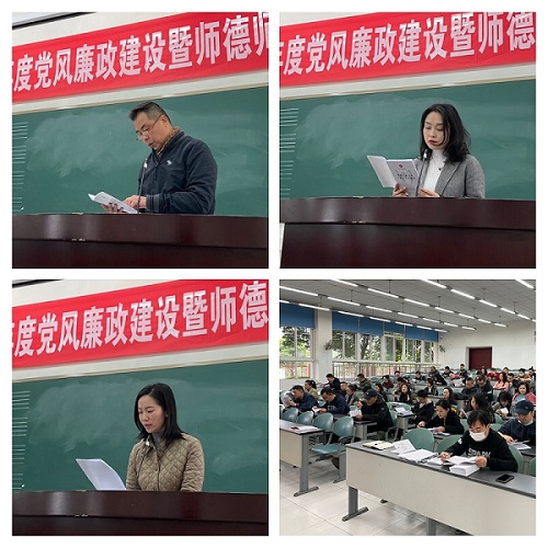 11月3日中午,流行音乐学院党总支召开了2020—2021年度党风廉政建设暨师德师风大会。学院领导分别组织大家学习了相关文件及重要讲话,并结合工作实际,对学院党风廉政建设和师德师风建设提出具体要求,提醒广大教师一定要保持清醒的头脑,认清当前形势,提高政治站位,以违法违纪典型案例时常警示自己,不触碰纪律红线,守住师德底线,纯正师风教风,维护教师形象。会议最后,全体教师现场签订《流行音乐学院教师党风廉政建设暨师德师风承诺书》。
