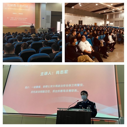 11月 10日中午,流行音乐学院党总支邀请新都公安分局政治安全保卫局肖志宏警官为学院师生开展了一堂法制教育专题讲座。肖志宏警官以“什么是法”为切入点,围绕“政治安全”、“法律知识”、“交通安全”、“通讯安全”等方面,结合生动的案例,联系实际,以案释法,以法论事,深入浅出地进行了讲解。通过本次法制教育专题讲座,唤起了全体师生的守法意识,进一步加强了法制观念,提高安全防范意识,让大家积极投身平安校园、和谐校园的创建中。