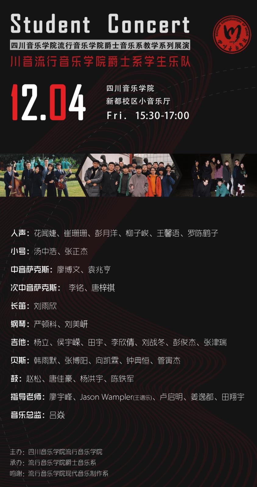 2020川音流行音乐学院爵士音乐系教学系列展演,期待您的到来!