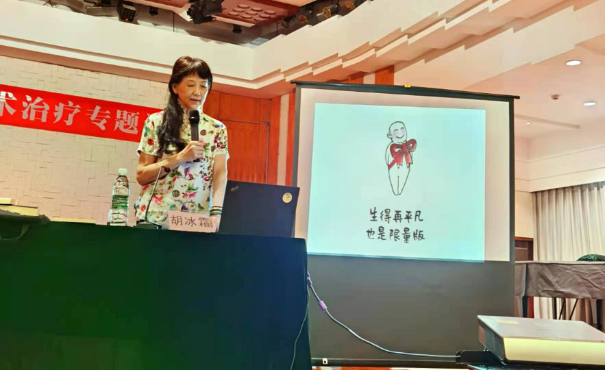 在讲座中胡教授结合川音同学们的艺术背景,梳理了奥尔夫音乐、绘画、诗歌等治疗手段,分享了她在川音参与的舞蹈、戏剧浅催眠、音乐等艺术治疗工作坊的经历。抛开晦涩的理论、抽象的符号与意象,采用的案例教学的方法,分析了音乐如何帮助诺贝尔文学奖获得者大江健三郎走出至暗时刻、激励创作;两个临床医生史怀哲与林帝浣用音乐、绘画祛魅心魔、慰藉社会;以海伦凯勒的人生故事鼓励大家勇敢面对困难,活出精彩人生。胡老师鼓励艺术专业同学,专注心流、扩展自己的感觉、知觉,达到不自觉提升心理健康素质的意图,构筑自我的心理健康屏障,珍爱生命,活出意义。