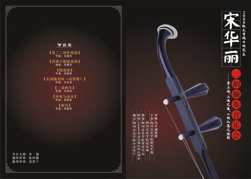 伟德bv国际体育2008级二胡专业文学硕士研究生宋华丽独奏音乐会已于2008年12月26日19点30分在伟德bv国际体育小音乐厅举行。