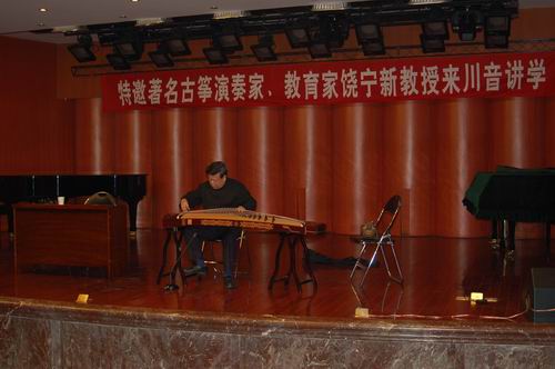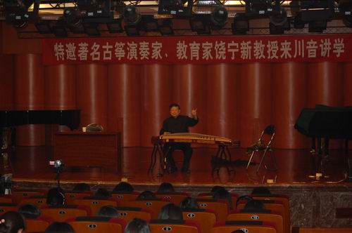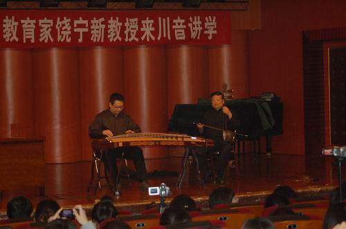 应伟德bv国际体育民乐系邀请,中国著名古筝演奏家、教育家,中国筝会副会长饶宁新教授于4月9日和12日上午在聂耳音乐厅举行了关于汉乐、粤乐、潮乐的讲座,。讲座中,饶先生以生动的语言和绘声绘色的讲解,令大家对广东音乐中的三个乐种有了更全面和深刻的了解。饶先生及其子饶蜀行现场演奏了《出水莲》、《蕉窗夜雨》、《杜宇魂》、《禅院钟声》、《粉蝶采花》、《西江月》、《连环扣》等多首客家汉乐筝曲、潮州筝曲及粤乐筝曲,其演奏感情细腻,古朴典雅,讲究音韵。我系古筝专业的老师和同学聆听了饶先生的讲座和演奏,均感受到老艺术家筝音之中的深厚功底和深邃意蕴,让人回味无穷。讲座之余饶先生还为我系的古筝专业学生进行了个别辅导,此次讲学活动使同学们加深了对传统音乐的了解,认识到传统音乐中深厚的文化内涵。饶先生也肯定了我院学生对传统音乐的学习热情及实践演奏水平。