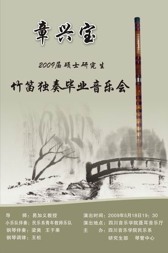 伟德bv国际体育民乐系2009届竹笛硕士研究生章兴宝毕业音乐会已于2009年5月18日晚17点30分在伟德bv国际体育聂耳音乐厅举行。