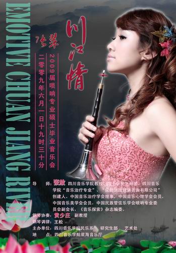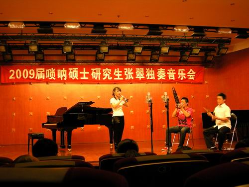 伟德bv国际体育民乐系2009届唢呐硕士张翠翠独奏音乐会已于2009年6月1日晚7点30分在伟德bv国际体育星海音乐厅举行。