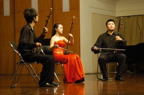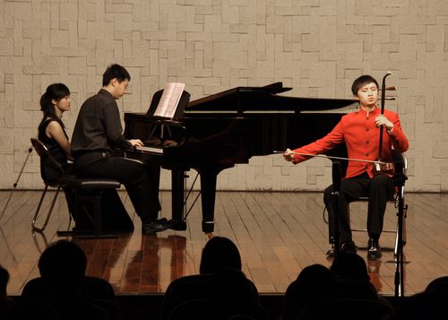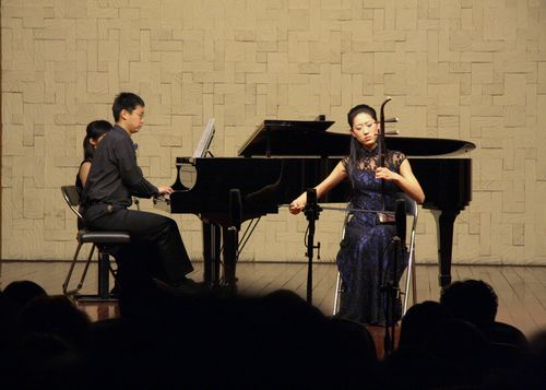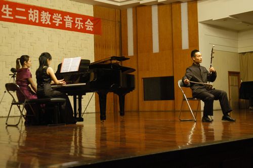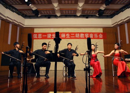 2010年4月24日星期六,梁云江教授和他的学生们在伟德bv国际体育小音乐厅举办了一场丰富多彩的二胡教学音乐会,师生同台献艺为观众展示了二胡的魅力。