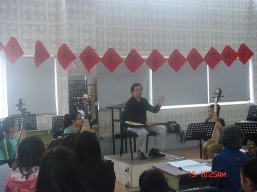应川音民乐系邀请,中国广播乐团,国家一级演奏员,弹拨乐声部长,川音民乐系琵琶客座教授陈音于2010年10月15日来我院讲学及指导教学。 10月18日上午,陈音在琴房大楼民乐系排练厅举行学术讲座,由民乐系副系主任梁云江教授及民乐系弹拨教研室主任江澹曦副教授主持。参加学术活动的有本院在职教师、离退休专业教师及本专业学生。主讲琵琶艺术的发展与创新,强调注重传统、尊重传统乐曲,学谱不离谱、新不离谱。演奏现代作品则讲究规范、 逻辑 与 完整性的统一,同时陈老师希望学生们能够勇于创新。 10月18日至19日,陈音教授在琴房大楼民乐系排练厅进行了公开教学,教授了由陈音作曲或改编的曲目。吴芮逸(大二)学习了《漂》、佘豆豆(研一)马兰(大二)杨乐怡(大二)学习了《茶马古道》、龚婷(研一)侯杨雪儿(大一)张雪(大二)学习了《阳光照耀着塔什库尔干》、关怀(大一)学习了《山之舞》,其间陈音教授的专业学生黄思霖同学给大家示范了《山之舞》。课堂上气氛活跃,陈音老师对每一位同学都悉心指导,同学们都感叹于陈音老师精湛的技巧、扎实的基本功以及强劲的节奏感。 最后陈音教授演奏并讲解了《秋月吟》,获得了热烈的掌声。民乐系主任易加义教授及副系主任王英也发表了讲话,对陈音教授的到来再次表示欢迎并希望陈音教授能经常回川音对学生的琵琶演奏进行指导。所有琵琶专业老师亦希望陈音教授每一次的到来能给学生们带来技术上和思想上的促进,使川音的琵琶艺术更加充满活力与生机。