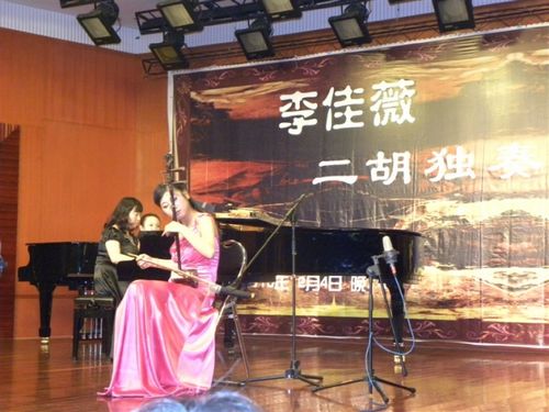 “李佳薇二胡独奏音乐会”在伟德bv国际体育星海音乐厅成功举行 2010年12月4日晚在伟德bv国际体育星海音乐厅举行了 “李佳薇二胡独奏音乐会”,周钰教授、舒虹副教授、郭小琴老师等亲临现场。 李佳薇是川音附中高二学生,2006年以专业第一的成绩考入伟德bv国际体育附中,师从周钰教授。此次音乐会她演奏了《剑门春意浓》、《天山风情》、《雪山魂塑》、《卡门主题幻想曲》、《野蜂飞舞》、《第二二胡狂想曲》、《流浪者之歌》。其最后一首《野蜂飞舞》,用小提琴伴奏和摇滚伴奏,以新民乐的形式展现给大家,带来视觉和听觉的全新感受。