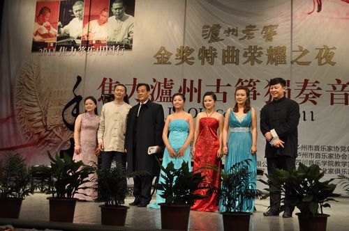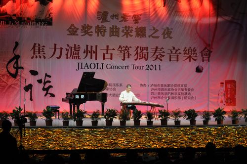 4月2日晚,一改往日沉寂的泸州江阳艺术宫前人头攒动、鲜花人潮此起彼伏。享有盛名的泸州籍我国当代著名古筝演奏家、伟德bv国际体育副教授焦力先生的2011中国筝乐巡回演出泸州站在这里拉开序幕,据悉,此次作为泸州市举办的民族高雅艺术专场古筝演出还尚属首次,音乐会由伟德bv国际体育、泸州市音乐家协会主办,泸州音协党总支部及古筝专业委员会协办,扬州金韵乐器特别支持,泸州老窖博大酒业金奖特曲荣誉冠名。 在一浪浪掌声中,焦力先生携爱徒先后演奏了《云裳诉》、《渔舟唱晚》、《秦桑曲》、《夜深沉》、《黄陵随想》等十多首经典,最后一曲焦力先生改编创作之佳作《旋舞》,伴随着近千人观众的现场掌声节拍,在热烈奔放的气氛中结束了整场音乐会,为酒城泸州献上了一场精彩纷呈的文化饕餮大餐。 当晚近千人的剧场座无虚席,更有来自泸州市委、音协、市宣传部及泸州老窖众多领导出席,多家电视及报面媒体现场进行报道。