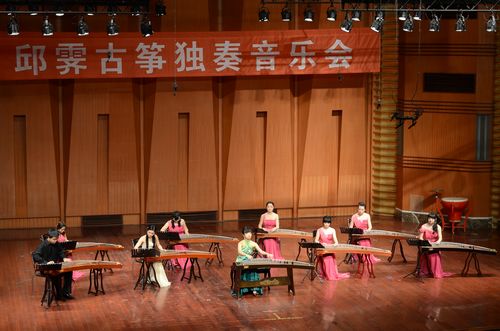 2011年4月9日晚上7点30分,著名古筝演奏家、中国音乐学院副教授邱霁在我院大音乐厅举办古筝独奏音乐会,本场音乐会由我院民乐系主办。 整场音乐会风格沉稳庄重,华美之余不露浮夸。曲目有巴蜀音乐音乐风格的《闹台》、《逆水行船》;流派筝曲《昭君怨》、《月儿高》;现代筝曲《剑令》、《层层水澜》以及《建昌月》、《铁马吟》等作品。邱霁以清润的音色,娴熟的技法,心静气肃的演奏征服了在场的观众。音乐会还邀请了民乐系刘瑜、陆晶、周天丽、段银莹等老师和天籁筝乐团颜婕、王晶晶、张吟等同学同台演出。 4月10日上午9点30分,邱霁还在我院星海音乐厅举行了题为《现代筝乐分析与高难技巧训练》的学术讲座,并就现代与传统筝乐作品的判定、演奏现代筝乐作品如何把握风格的依据以及现代筝乐演奏的技术、音色把握等问题阐述了自己的观点,也给同学们带来了新的认识和启发。