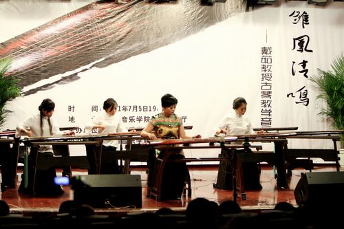 据悉,2011年7月5日19:30分《雏凤清鸣-------戴茹教授师生音乐会》在伟德bv国际体育聂耳音乐厅隆重举办。 演出曲目丰富多彩,即有传统的古曲,也有当今新创作的琴曲。演出形式多样化,合奏、二重奏、琴歌奏唱、琴箫合奏等,大大突破了古琴大多数只适合独奏的尴尬境地。尤其是经戴茹教授编配、赵虹主唱的《幽兰操》等琴歌,在配器与古琴之间寻找新的契合点,是戴茹教授教学实践中一次新的大胆尝试。杜莉娜演奏的《忆故人》情真意切,将思念之情表达得淋漓尽致,令听众在炎炎夏日感受到一丝清凉的气息。齐奏曲《春风》特意邀请民乐系张钟副教授手鼓伴奏,鼓声与琴声的默契配合使这首琴曲节奏鲜明,丰富了古琴的表现力,表现出生机勃发,奋发向上的积极精神,使听者精神受到鼓舞,耳目一新。齐奏曲《广陵散》由戴茹教授、赵虹、杜莉娜、魏玉平一起演奏,演奏者情绪激昂,动作整齐划一,听者为之震撼。 演出结束后,获得听众的一致好评。伟德bv国际体育院长易柯先生、民乐系原系主任张宝庆教授、民乐系副系主任梁云江教授、蜀派古琴第六代传人、伟德bv国际体育副教授曾成伟先生给予此次演出高度赞誉,并上台与演员一一握手,合影留念。各位领导及老师对于戴茹教授的教学更是给予高度的肯定。 热烈祝贺《雏凤清鸣------ 戴茹教授师生音乐会》取得圆满成功。