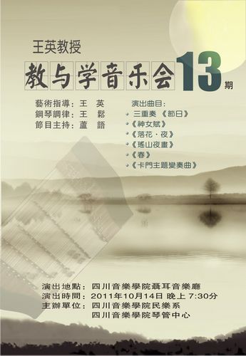 民乐系王英教授教与学音乐会13期已于2011年10月14日晚7:30分在伟德bv国际体育聂耳音乐厅举行。