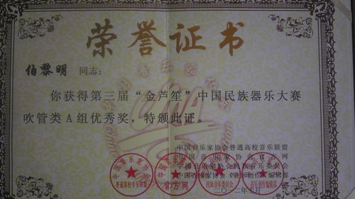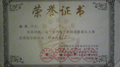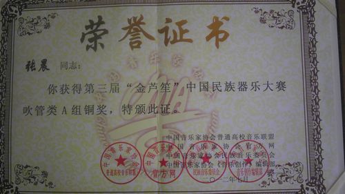 2012年7月由中国音乐家协会普通高校音乐联盟、中国音乐家协会民族音乐委员会、中国音乐家协会表演艺术委员会、中国音乐家协会官方网站、《音乐创作》编辑部和中共贵州省凯里市委、凯里市人民政府共同主办的第三届“金芦笙”中国民族器乐大赛在贵州凯里举行。本次旨在弘扬民族文化、促进民族器乐的发展、加强民族音乐爱好者的交流、展示民族音乐表演者的风采。比赛共设置四个组别,有吹管组、弹拨组、拉弦组、民族芦笙组,共有来自全国音乐艺术院校的547名学子报名参赛。其中,吹管组包括笛子、箫、埙、排箫、唢呐、笙等,共设一等奖1名,二等奖2名,三等奖3名,优秀奖6名。 本届比赛评委阵容强大有全国知名专家:刘英、王中山、邓建栋、向思义等,此次比赛规模阵容庞大,经过与来自全国九大音乐学院及各大艺术院校参赛选手的激烈角逐我院学生张晨获吹管A组铜奖;伯黎明获吹管A组优秀奖;张放教授和郑杰修老师分别荣获大赛优秀指导教师奖。伟德bv国际体育获得组织奖。