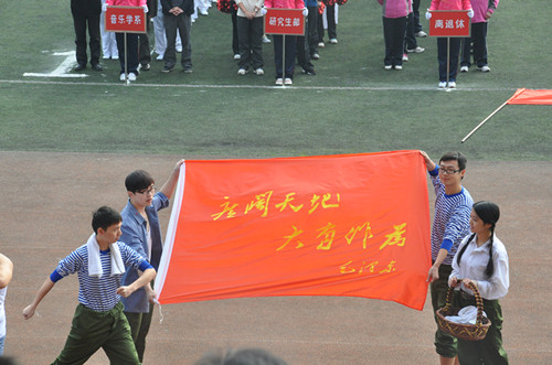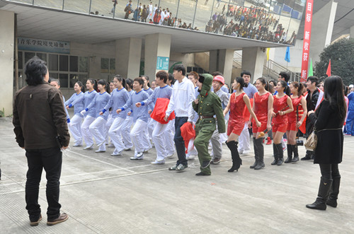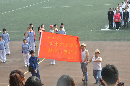 2012年11月8日,在这秋风送爽的季节里,热烈庆祝中国共产党第十八次人民代表大会胜利召开。与此同时,我院运动会在新都校区隆重举行。 我系党总支书记谢勇、主任易加义老师、副主任王英老师、梁云江老师、系学生党支部书记、办公室主任陈娟娟老师、系团总支书记张云希老师及全系师生参与本次运动会。 我系的开幕式表演共分为6个部分。从50年代我们要发展体育运动,增强人民体质;60年代向雷锋同志学习的精神;到70年代向广阔天地,大有作为而努力奋斗;80年代的科技成为第一生产力;到以发展高科技,为实现产业化而奋斗的90年代;再到我们要大力发展文化产业的当今。这一幕幕的画面,放佛把我们都带回到那些年代。作为当代大学生的我们,为祖国的繁荣富强而骄傲自豪。 最后,整个表演以编排新颖,搏人眼球的好评荣获我院2012年冬季运动会入场式表演第一名的佳绩。