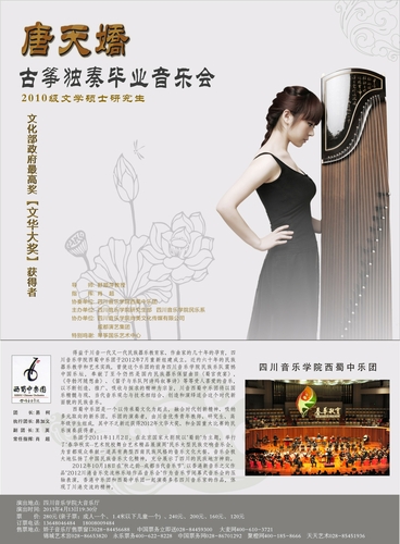 民乐系2010级文学硕士研究生唐天娇古筝独奏毕业音乐会于2013年4月13日19:30分于伟德bv国际体育大音乐厅举行。