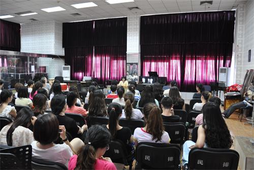 2013年6月25日下午2:30分,王英教授的专题讲座《扬琴调律问题探究》在民排厅举行,我系扬琴老师和60多位学生们都积极、认真的参加了讲座,王英教授讲授的内容得到了老师和学生们的一致好评,弹拨教研室焦力主任也加入其中,对王英教授的讲座给予了充分肯定和高度评价。 以下是专题讲座的内容摘要: 内容摘要:对于扬琴演奏者来讲,跑音是扬琴始终存在的问题。由于气候变化的影响使木质的琴体以及金属的琴弦发主变化,另外,经常的弹击振动也会使弦轴轻微松动,弦的张力减弱。那么,在现有的情况下怎样能使音准得以保持,从而保证学习过程的顺利进行和音乐会的完美表现呢? 对于学习扬琴的学生来说,扬琴的调弦必须具备专业音准的听力才能胜任。一台402型扬琴有140多根琴弦,目前的扬琴经过多次改良,跑音问题相对有了较好的控制,但任然是扬琴质量面临的主要问题不光在弹得过程中会由于击打造成跑弦,天气干湿度的变化也会影响扬琴音准的稳定性。在民族器乐中,扬琴的调音(三最)最重、最大、最艰巨。 关键词 扬琴 ;压力;音色;纯度;物理性能;气候变化的影响; 弦轴; 音位;调音器;张力 ;杂音; 总结 能够较快并熟练地调好一台琴, 是一个不断实践和积累的过程, 同时也是一个必须学习的过程。音准是演奏质量保证的第一前提, 调音法的运用是扬琴学习中必不可少的一课。