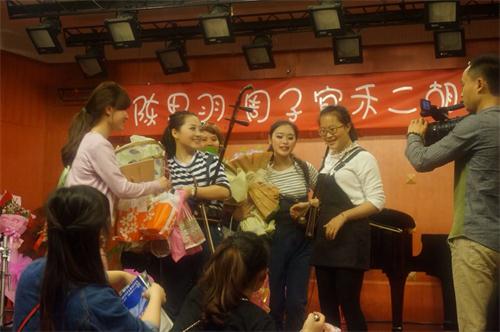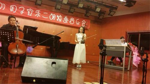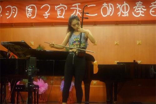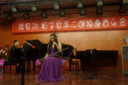 4月16日晚,伟德bv国际体育星海音乐厅内不断传出掌声,我院民乐系教授周钰的本科三年级学生周子宜禾、陈思羽二胡独奏音乐会在这里举行。 本场演奏会两位学生共演奏了七首风格迥异的作品,上半场为学院风格的经典曲目,气势恢弘,热情奔放。周子宜禾演奏的名曲《第二二胡狂想曲》,表现细腻、生动,将民族风与时代感演绎得淋漓尽致。对于《满江红》的悲壮豪迈、磅礴大气也给予了充分的表达,无论慢板的婉转与快板的激扬都表现得技艺娴熟,显示出了扎实的基本功和较高的音乐领悟力。陈思羽演奏的《蒙风》,时而火热、时而舒缓,节奏鲜明,对于长调风格的把握恰到好处。下半场,演奏风格有了全新的改变,许多曲目都是第一次以二胡的演奏形式出现。改编自歌曲《那一场风花雪月的事》,由周子宜禾演奏,浪漫抒情,配以低沉的大提琴,如歌如泣,令人憧憬美好的爱情。两位学生共同演奏的《趣》活泼、俏皮,配上双排键、架子鼓等现代乐器,时尚、激情、刺激,将演奏会推向高潮。 周钰教授、郭小琴老师也都亲临现场指导助阵。本场演奏会得到了现场观众的极大赞赏和喜爱。