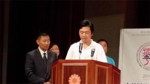 2014年8月28日,由(文化部)中外文化交流中心主办,韩国首尔中国文化中心协办 的2014中外民乐交流大会--二胡比赛在韩国仁川天空活动中心盛大开幕。此次比赛通过层层选拔,晋级决赛的选手90%都来自全国九大音乐学院,有许多是屡次参加国内外比赛取得优异成绩的好手,同时也有来自包括美国在内的海外选手的参加,凸显了这此次比赛的高规格,高专业性。中外文化交流中心副主任严振全 中国驻韩大使馆兼首尔中国文化中心主任史瑞林参赞全程参加了此次活动。