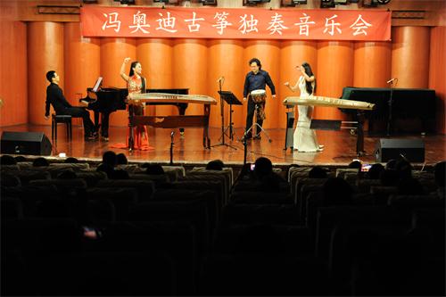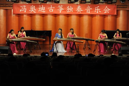 2015年5月5日晚7点半,冯奥迪古筝独奏音乐会在伟德bv国际体育聂耳音乐厅成功举办。冯奥迪现为高二年级学生,天籁筝乐团团员,2010年以优异成绩考入伟德bv国际体育附中,师从陆晶副教授学习至今。 当晚冯奥迪领衔五位天籁筝乐团团员以一首欢快的《百花引》开场,她们默契的配合将此曲演绎出一个全新的意境,正如曲目名字一样百花齐放,充满朝气蓬勃!随后她演奏了在她学琴筝程中起着重要意义的曲目《抒情幻想曲》,她曾因此曲获得多个奖项。紧接着演奏了创作于2014年的古筝与钢琴的协奏曲新作品《忆梦》将音乐会推向一个高潮。下半场开场她用钢丝筝弹奏了潮州传统筝曲《浪淘沙》,钢丝筝的音色清透明亮,给听众带来耳目一新的感觉。随后的筝独奏《无境》,曲目跌宕起伏,奥迪的演奏充满张力,处理极富层次,也同样给观众带来了美的享受,使人感受到了古筝这件乐器散发的无穷魅力。 音乐会在一首热情奔放欢快的《热情蔷薇》中圆满结束。到场的专家、老师及观众们都对本次音乐会给予了一致好评!
