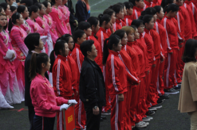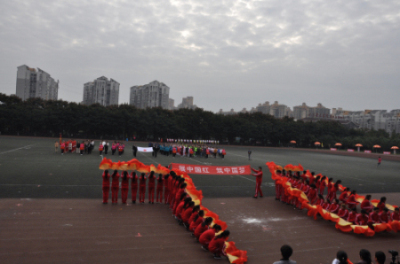 民乐系入场式方阵由我系党总支书记谢勇、副系主任梁云江带领。我系在开幕式中的表演给大家留下了深刻印象,音乐响起同学们用扇子变幻图形、拼成花朵,后我系谢勇书记手举火炬,点燃由同学们排列组成的象征青春与希望的火焰,最后同学们整齐的排列出“70”图样,象征世界反法西斯胜利70周年、我国抗战胜利70周年,赢得全场的热烈掌声。随后进行的广播操比赛中,我系25名同学穿着红色运动服,从容自信、动作标准有力,展现了当代大学生的青春朝气。