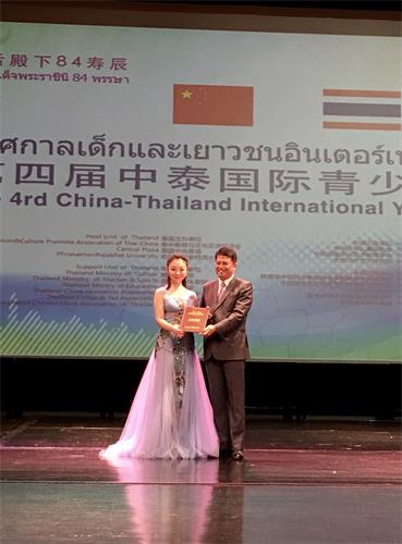 2016年8月9日,“中泰一家亲”第四届中泰国际青少年艺术节,特邀唐天娇为音乐会评委及演出嘉宾,再次在泰国曼谷王权大剧院奏响--中国之声 唐天娇精彩的演奏,赢得了中泰现场观众的热烈掌声和称赞,泰国总理卫队卸林军总队长、泰国国会宪法改革议会议员--替底瓦上将,授予唐天娇“中泰友谊文化使者”,并颁发了荣誉证书。