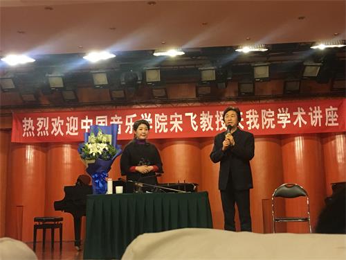 2017年4月20日,“中国专业音乐院校原创音乐发展联盟”于伟德官网成立。就此机会,我系有幸邀请到中国音乐学院副院长宋飞教授,在聂耳音乐厅开展了学术讲座。 宋飞老师从中国音乐演奏技法出发,讲解了如何处理音乐语言的抑扬顿挫、起承转合。老师分别举例了《新婚别》《江河云梦》《江河水》《河南小曲》《江南春色》等乐曲,用严谨准确的演奏向师生们讲解了如何通过了解音乐的地域、方言等背景来处理乐句中的装饰音、重音。 宋飞老师生动的话语感染着每一位师生,那动人的旋律又将我们带入到华丽的音乐世界中。我们非常感谢宋飞老师同师生们传经送宝,同时也在短暂的相聚中期盼着下一次的相逢! 民乐系王佳霖报道