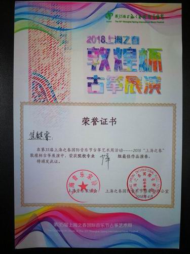 在2018年5月2日结束的第35届“上海之春”国际音乐节古筝艺术周——2018“上海之春”敦煌杯古筝展演中,我系附中高二古筝专业学生焦麒睿荣获专业少年组最高奖——“院校专业少年组最佳作品演奏”。11所音乐学院参加的少年组和青年A组6位“最佳作品演奏”奖获奖选手中,焦麒睿同学是唯一一位地方院校学生。 本次活动由上海音乐家协会主办,上海音乐家协会古筝专业委员会、上海师范大学音乐学院承办,上海音乐学院民乐系、上海民族乐器一厂、上海音乐出版社、上海熠馨文化交流有限公司协办。根据国家相关规定将大赛改为展演,并且不设一二三等奖,最高奖为“最佳作品演奏”奖。赛制分为两轮,决赛规定演奏组委会委约的新作品。统一提前一个月发放新作品乐谱,这对选手是一个极大的考验。在比赛和获奖展演中,焦麒睿同学脱颖而出,受到了各大院校专家评委的高度赞誉,所获得的“最佳作品演奏”奖是我系在该项大赛中首次获得最高奖。为我院我系争了光。同时其指导教师焦力副教授获得了“院校专业组优秀指导教师”奖。最后向焦麒睿同学和指导教师焦力副教授表示热烈祝贺。
