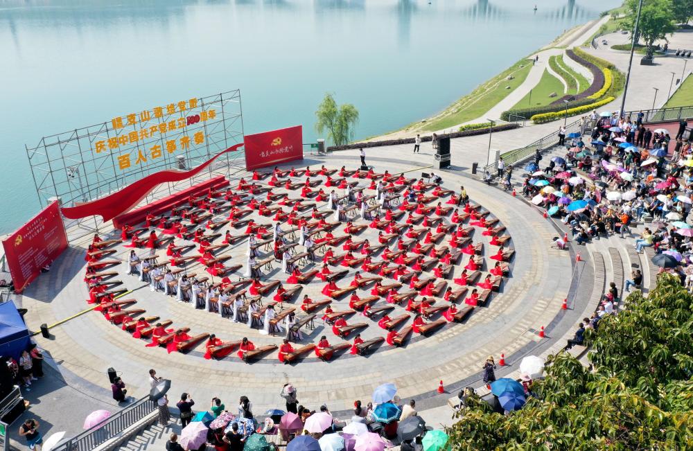 2021年5月1日上午,民乐系古筝专业副教授陆晶受邀参加由中共南充市顺庆区委宣传部、四川省音乐家协会古筝学会、南充市顺庆区文化广播电视和旅游局主办,南充市顺庆区中城街道办事处、南充市顺庆区文化馆承办的“唱支山歌给党听”百人古筝齐奏活动,与百余人共同演奏“唱支山歌给党听”,短短的七分钟,熟悉的旋律使现场观众激情澎湃,热泪盈眶!