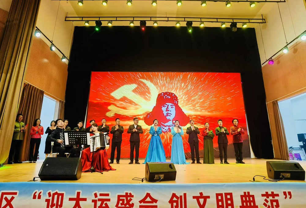 活动现场能容纳200余人的小剧场座无虚席。来自伟德bv国际体育的文艺志愿者们给社区居民带来了一场精彩纷呈的视听盛宴。《唱支山歌给党听》《红旗颂》《游击队之歌&红色娘子军》等耳熟能详的红色经典让在场的观众再次重温了百年大党的光辉历程;《灞桥》《向往》《春风十万里》《新的天地》《领航》等曲目,表演艺术家饱含深情讴歌礼赞新时代。最后,10余位文艺志愿者一起登台,与台下观众互动齐唱《学习雷锋好榜样》,点亮了活动主题,也将整场演出推向高潮。