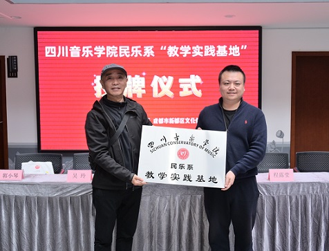 3月30日民乐系党委书记、主任张忠带领民乐系办公室副主任吴玲、吹打教研室主任郑杰修、弦乐教研室主任郭小琴一行走进成都市三原外国语学校小学部、成都市新都区文化馆进行交流洽谈并举行“民乐系教学实践基地”签约、授牌仪式。
