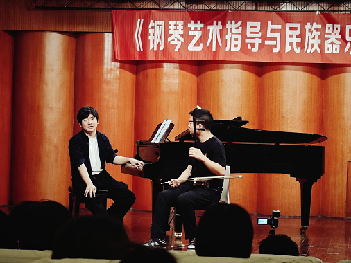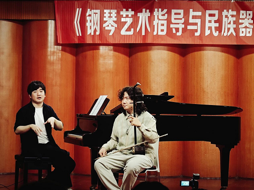 在讲座进行中,李渊清老师还跟我系二胡学生雷振华、旺杰,进行了钢琴与民族器乐的合作演奏,并讲解了其中的技巧和要点。他说:“艺术合作需要彼此的尊重和理解,通过互相交流和协作,才能实现艺术的更高境界。”