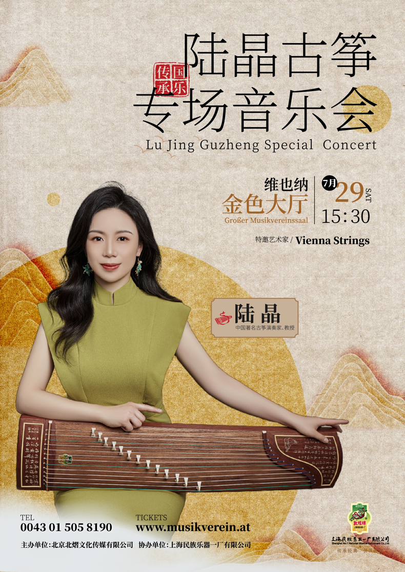 7月29日,“陆晶古筝专场音乐会”于维也纳金色大厅成功举办。本场音乐会汇集了古筝独奏、重奏、合奏等多种演出表现形式,同时,邀请到知名钢琴家陈禹、维也纳弦乐团作为协奏,诠释了中国民族乐器与西洋乐器的完美结合。音乐会精选了不同风格的经典筝乐作品。在陆晶教授娴熟的技巧和对中国音乐近乎完美的演绎下,为观众带来一场精彩的中国民族音乐盛宴。更值得一提的是,此次音乐会是维也纳金色大厅上演的首场个人古筝专场音乐会,对古筝艺术的发展也有着更深远的意义。