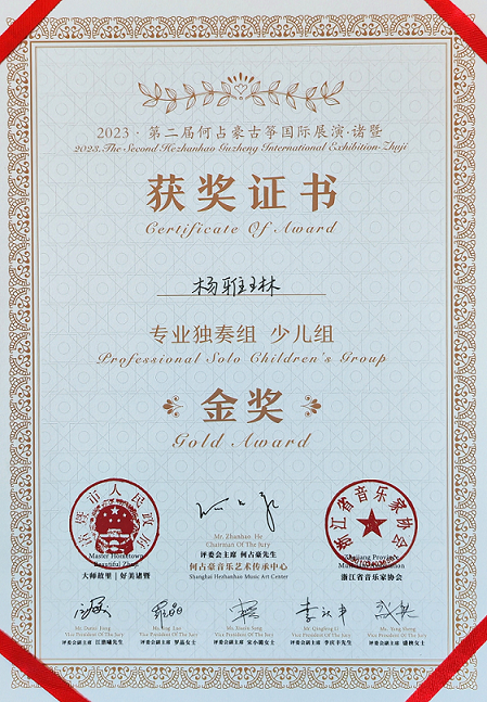 在第二届何占豪古筝国际展演中,冯奥迪获得专业青年A组金奖、陈峟霖(研三)获专业青年A组优秀奖;初二学生杨雅琳获得专业少儿组金奖。该展演由诸暨市人民政府、浙江省音乐家协会主办,在浙江诸暨隆重举行。本次大赛吸引了来自全球多个国家和地区的500 多位古筝选手参加本次活动。