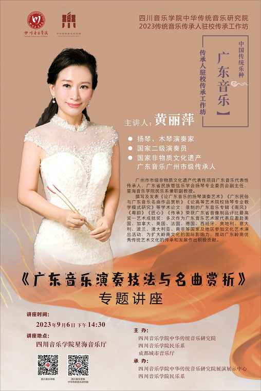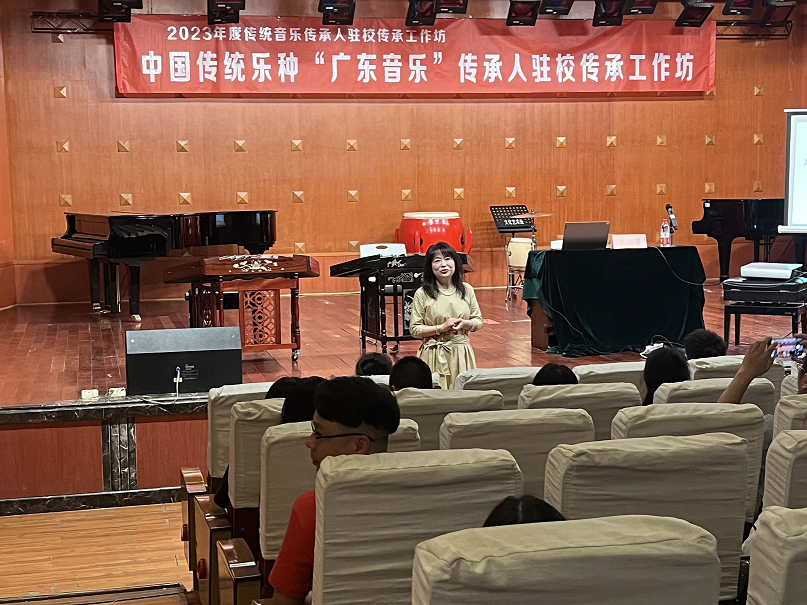 伟德bv国际体育民乐系弹拨教研室于2023年9月6日下午邀请广州市市级非物质文化遗产代表性项目广东音乐代表性传承人、广东省民族管弦乐学会扬琴专业委员会副主任、星海音乐学院民乐系兼职副教授黄丽萍老师,在伟德bv国际体育星海音乐厅给全系师生做了《广东音乐演素技法与名曲赏折》的讲座。