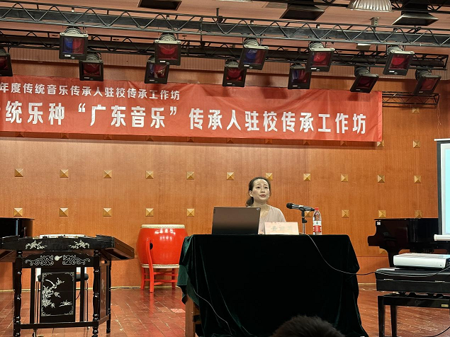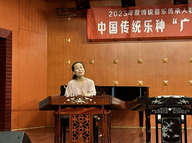 黄丽萍老师提出:每一个作品它如果能够很好的演绎出来,它就是需要大家的不断的精益求精的一个学习。只有把握好广东音乐的演奏技法,把握好乐曲的这种韵味意境,我们才能够把我们音乐也做好。随后为大家带来了《赛龙夺锦》、《银河会》、《连环扣》、《雨打芭蕉》四首经典名曲的鉴赏,对比传统演奏和创新演奏,让我们对广东音乐有了更细致的了解。