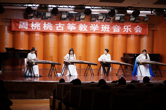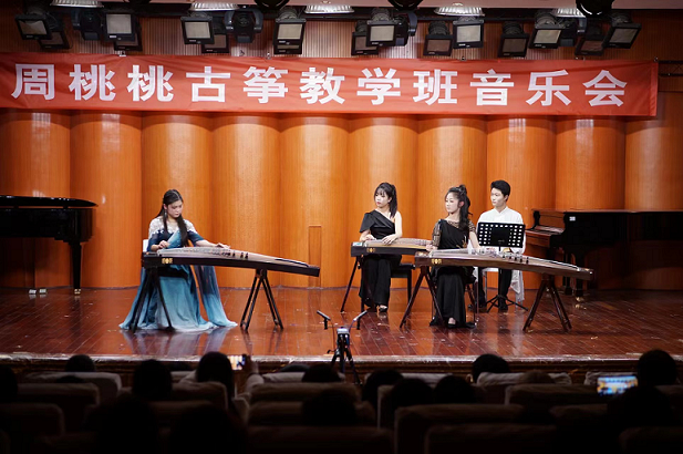 古筝重奏《伺机而动》由本场音乐会指导教师周桃桃创作的筝曲,夜幕降临,光与影的对峙与别具一格的旋律为本场音乐会的终幕画下完美的句号。