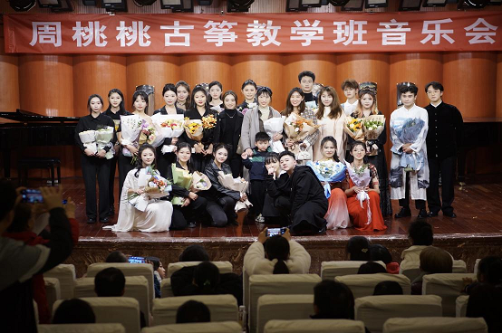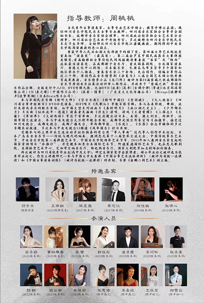 筝道不孤,众行致远。在探索古筝无限可能性的道路上,怀揣着同样的追求,遇到了志同道合的彼此;值得一提的是,音乐会成员除了川音在读的附中至大学的学生外,也特邀了过去三年本科毕业的教学班成员,她们或担任古筝助奏,或客串打击乐,排练筹备期间,新老成员互相交流学习心得,获益良多。周桃桃老师的悉心指导与学子们的共同努力最终带来了一场有质感的舞台呈现和体验,这不仅是一场教学成果的展示,也是一次以筝乐之名的走心之约。
