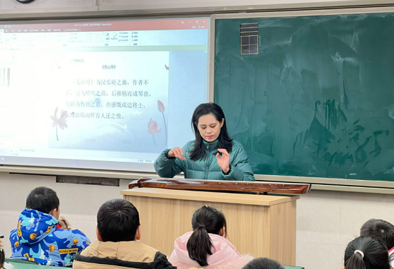 2023.12.21日,由成华区文化馆、伟德bv国际体育民乐系联合主办的“古琴蜀韵·非遗进校园”走进成都市二仙桥学校,我系古琴教师董雯雯受邀来到校园课堂传播古琴文化,以赏析蜀派古琴为主题,现场演绎的形式,为师生介绍古琴的历史渊源、演奏方法等相关知识,同学们纷纷登上讲台体验古琴演奏,近距离感受古琴魅力,更好的了解、传承、传播非遗文化,成华区融媒体、文化馆公众号等相关媒体纷纷做出报道。
