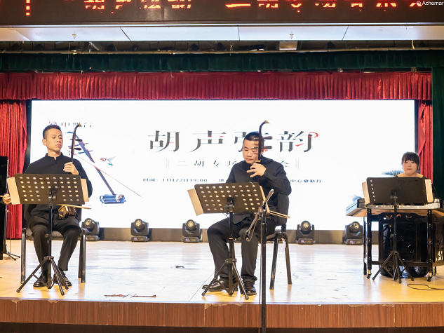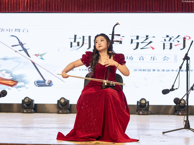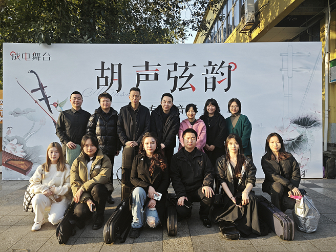 受电子科技大学大学生文化素质教育中心邀请,我系郭小琴、宋华丽、侯少哲、黄小玉、付雅璐、马霄汉6名教师带领二胡专业学生侯佳欣(研一)、弋佳鸢(大二)、王雪儿(大二)、雷振华(大四)、王秋蓓(高三)于2023年11月22日晚7点在电子科技大学沙河校区学生活动中心夏新厅成功举办了“胡声弦韵——二胡专场音乐会”。