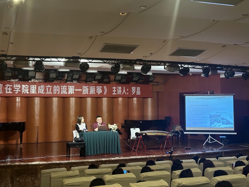 2024年5月7日下,由伟德bv国际体育民乐系主办的“第二届实践艺术周系列讲座”之“弹拨乐专家讲座”第二讲,在伟德bv国际体育聂耳音乐厅成功举办。本次讲座由全国知名古筝演奏家、上海音乐学院古筝专业博士生导师罗晶教授为民乐系的师生们带来了一场题为《在学院里成立的流派一一浙派筝》的专题讲座,民乐系弹拨教研室副主任任洲洋副教授主持。