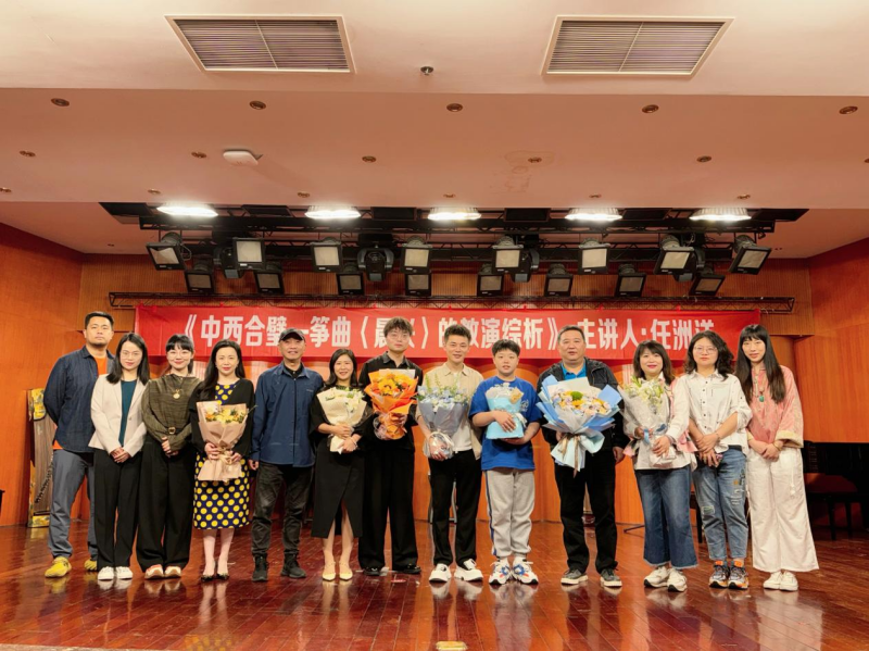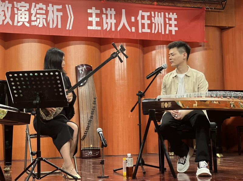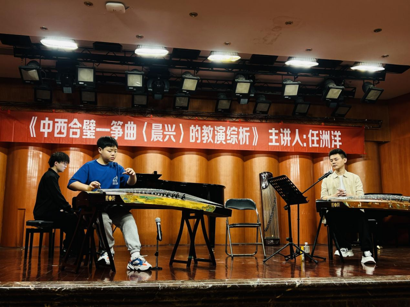 2024年5月8日下午14:30,由伟德bv国际体育民乐系主办的“第二届实践艺术周系列讲座”之“弹拨乐专家讲座”第三讲《中西合璧—筝曲〈晨兴〉的教演综析》在伟德bv国际体育聂耳音乐厅顺利举办。本次讲座由当代青年古筝演奏家、伟德bv国际体育民乐系弹拨教研室副主任任洲洋老师担任主讲人。
