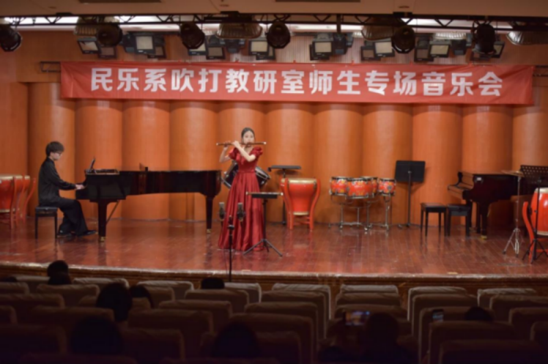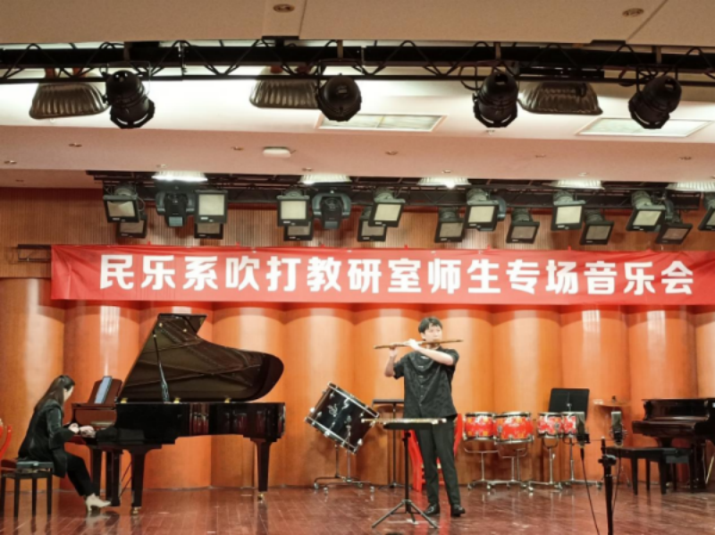 2024年5月9日晚,由伟德bv国际体育学院民乐系主办的2024第二届实践艺术周吹打乐教研室师生专场音乐会,在伟德bv国际体育聂耳音乐厅成功举办。民乐系党委书记、系主任张忠、副系主任江澹曦及民乐系师生和来自社会各界的民乐爱好者观看了音乐会。经民乐系吹打教研室师生精心策划和准备,本场音乐会中共上演了12首作品,包括吹打乐、竹笛独奏、竹笛二重奏、唢呐独奏、笙独奏、笙重奏、笙合奏及打击乐重奏等多种演奏形式,涵盖了传统、现代及当代不同音乐风格、不同精神内涵的民族管乐和民族打击乐作品,内容丰富,形式多样。参加音乐会演出的师生技艺精湛,配合默契,不同乐器的演奏和而不同,美美与共,现场时而响起热烈的掌声,为现场观众献上了一场精彩无限、铿锵有力的音乐会。