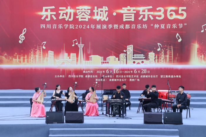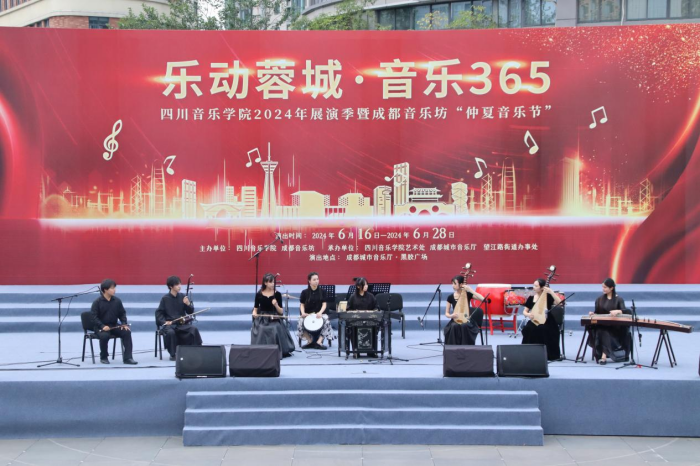 2024年6月30日晚18:30,“乐动蓉城”伟德bv国际体育2024年展演季暨成都音乐坊“仲夏音乐节”民乐系专场音乐会于城市音乐厅·黑胶广场成功举行。