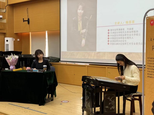 2024年11月29日,青年扬琴演奏家、作曲家、伟德bv国际体育民乐系校友、现为天津音乐学院教师、亚洲扬琴协会会长陈芸芸老师应邀回母校进行“演奏者视角下的创作--陈芸芸扬琴作品解析”及“故乡的芸--陈芸芸作品讲析音乐会”两场活动成功举行。