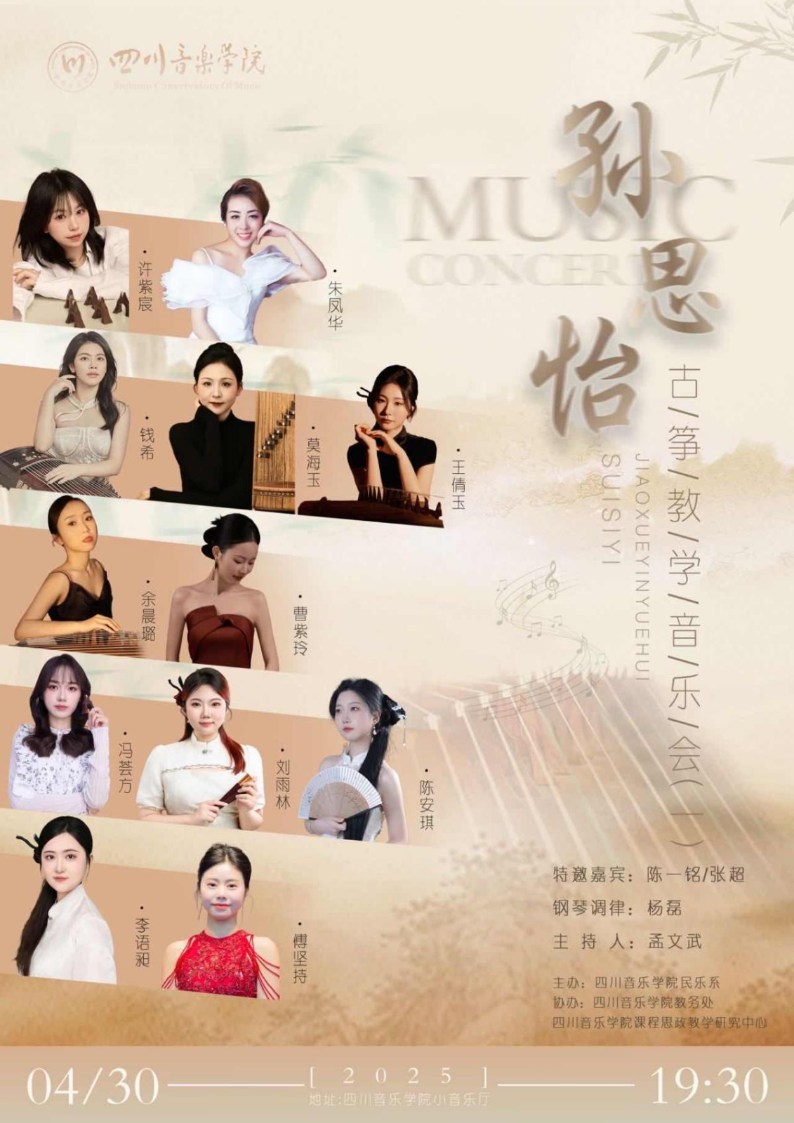 民乐系外聘教师孙思怡古筝教学音乐会将于2025年4月30日晚7点30分于伟德bv国际体育小音乐厅举行