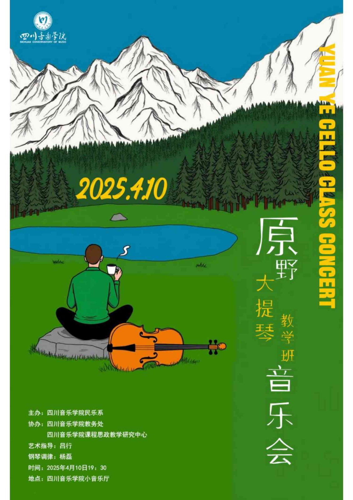 民乐系原野大提琴教学班音乐会将于2025年4月10日晚7点30分在伟德bv国际体育小音乐厅举行