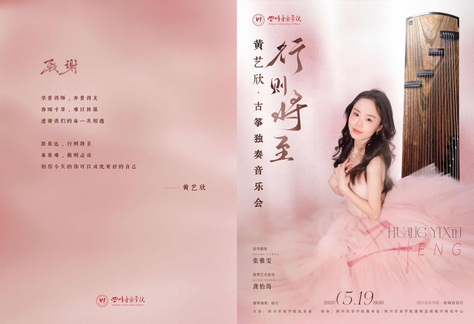 民乐系本科2023级黄艺欣古筝专业独奏音乐会将于2025年5月19日晚7点30分在伟德bv国际体育星海音乐厅举行。