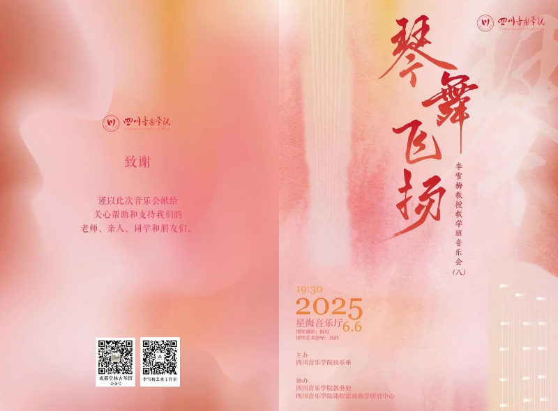 民乐系李雪梅教授“琴舞飞扬”教学班音乐会将于2025年6月6日晚7:30在伟德bv国际体育星海音乐厅举行。